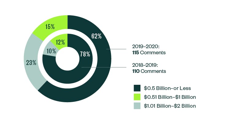 Even with a slight shift in focus from 2018–2019, smaller companies continued to attract the greatest scrutiny in the 2019–2020 report.