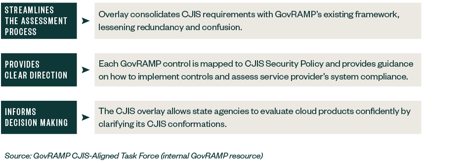 Additionally, for SPs supporting CJIS, GovRAMP provides an overlay of enhanced security controls tailored to align with CJIS Security Policy at the GovRAMP Moderate impact level. This overlay maintains NIST 800-53 alignment while addressing specific CJIS security needs.