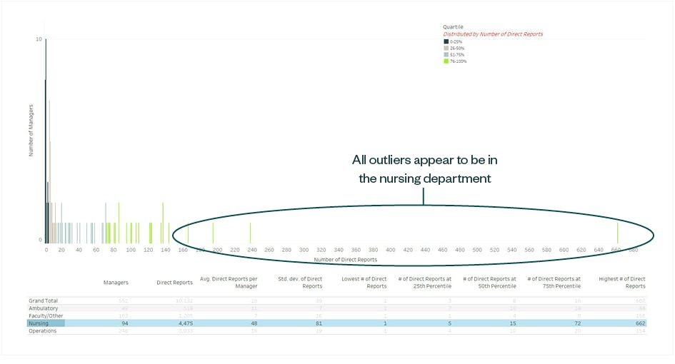 In the next analytical cycle, you could break down those lenses into quartiles to understand the overall distribution of span of control across the organization.