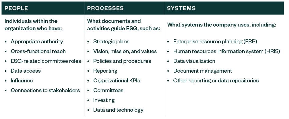 Noting that reporting objectives can evolve over time is also important. As processes for data collection mature and information requirements are refined, continued improvement remains an integral part of the reporting cycle. A multiphase approach to ESG standards can meet both short- and long-term objectives.