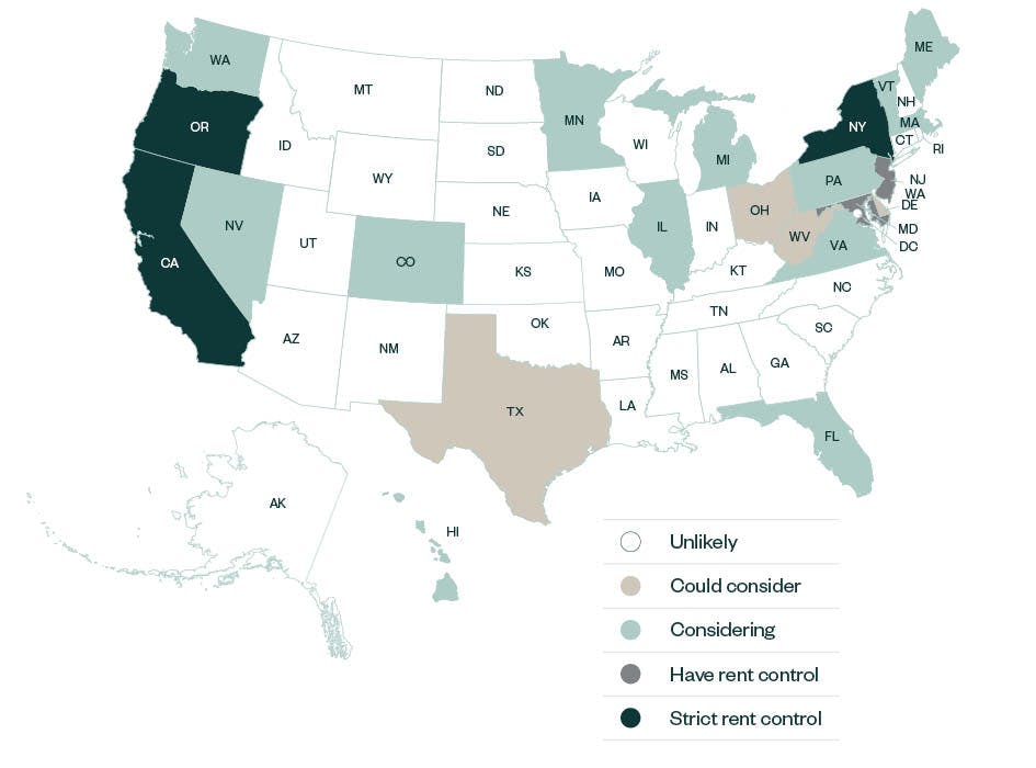 While urban coastal markets, including California and New York, have implemented or enhanced rent control measures in recent years, local government and grassroots efforts are pushing for rent control and other restrictions, including eviction constraints, even in areas generally considered affordable.