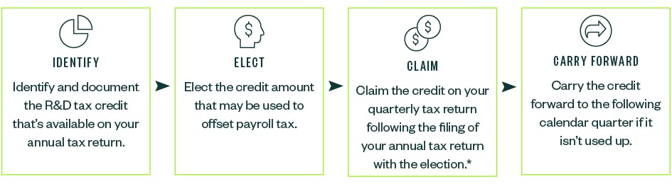 If you answered yes to the questions above, here’s the process to apply the R&D tax credit against your payroll tax: