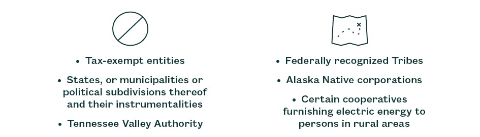 Credits generated from the following types of technologies, among others, qualify for elective payment for applicable entities.
