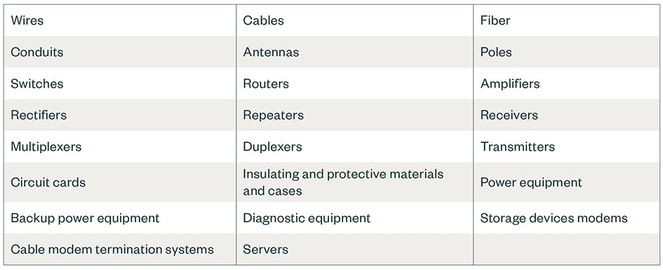 The sales tax exemption applies to all sales of equipment, machinery, software, ancillary components, appurtenances, accessories, or other infrastructure purchased for use in the provision of communications services and all services purchased by a provider in the provision of the communications service used in the repair, maintenance, or installation in such communications service.