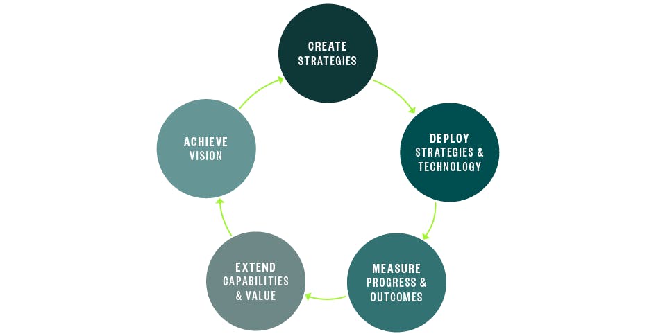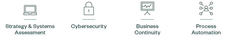Going beyond simple technology implementation, you can integrate solutions that support your people, process, and technology to work together to move your organization forward and make sure your technology strategy and plan are aligned with the business.
