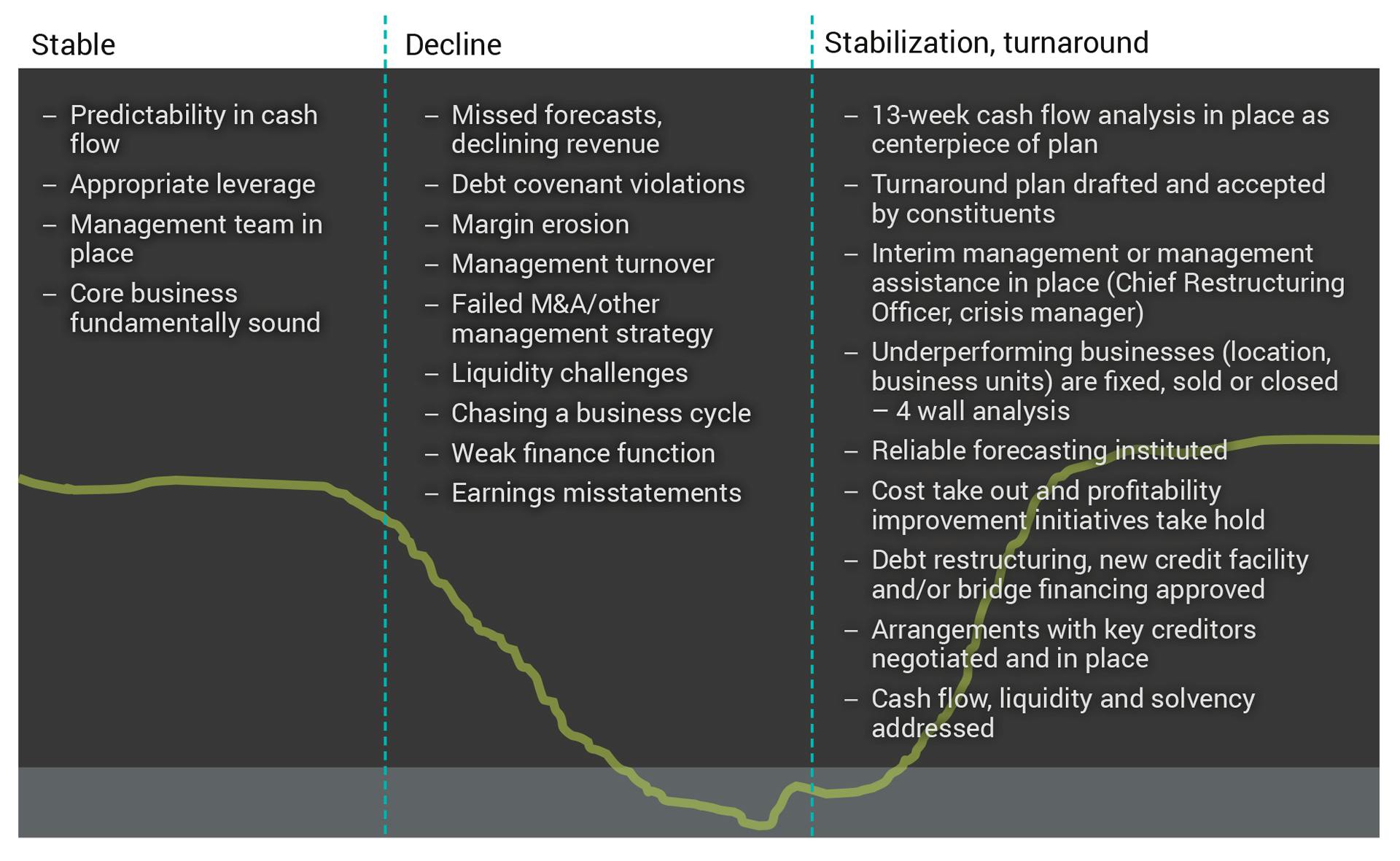 Prior to March 2020, the U.S. economy was experiencing the longest economic expansion in history. A period that culminated into peak earnings and peak leverage. All the hallmarks were in place: significant merger and acquisition (M&A) activity, recapitalizations, initial public offerings (IPOs), new start-ups and general growth investments. Business plans and capital structures were set for continued growth. However, the economic landscape has shifted notably since then. Elevated interest rates have persisted longer than many companies anticipated, while labor shortages and inflationary pressures continue to impact operational costs. Many businesses are grappling with over-leveraged structures that struggle to cope with ongoing interest expenses and rising costs. These evolving challenges underscore the need for strategic corporate renewal and turnaround solutions to navigate the complexities of today’s business environment.